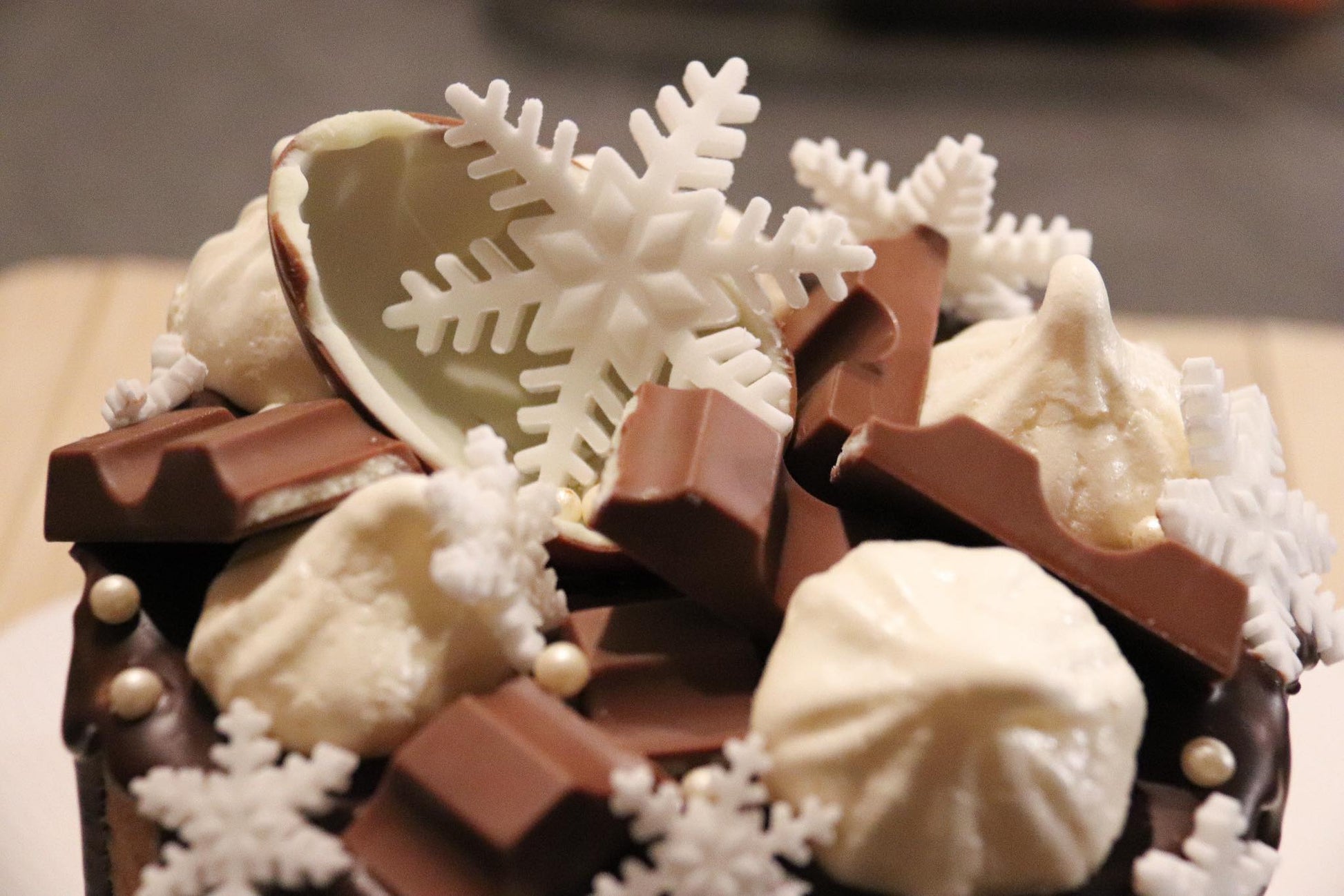Dus, als je op zoek bent naar een zoete traktatie die je laat watertanden, zoek dan niet verder dan onze Kinder Bueno taart en dit nu in een feestelijk jasje!